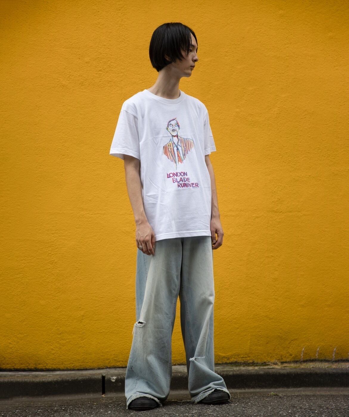 デザイナーDAITOのホワイトカラープリントTシャツ。