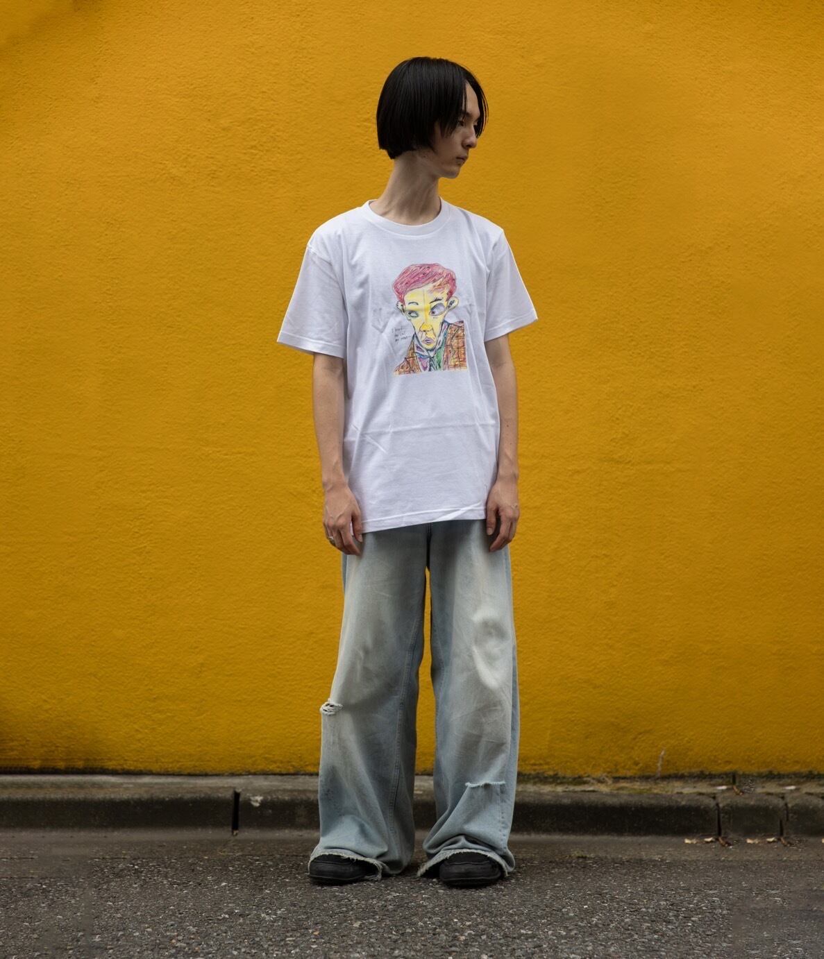 デザイナーDAITOのホワイトカラープリントTシャツ。