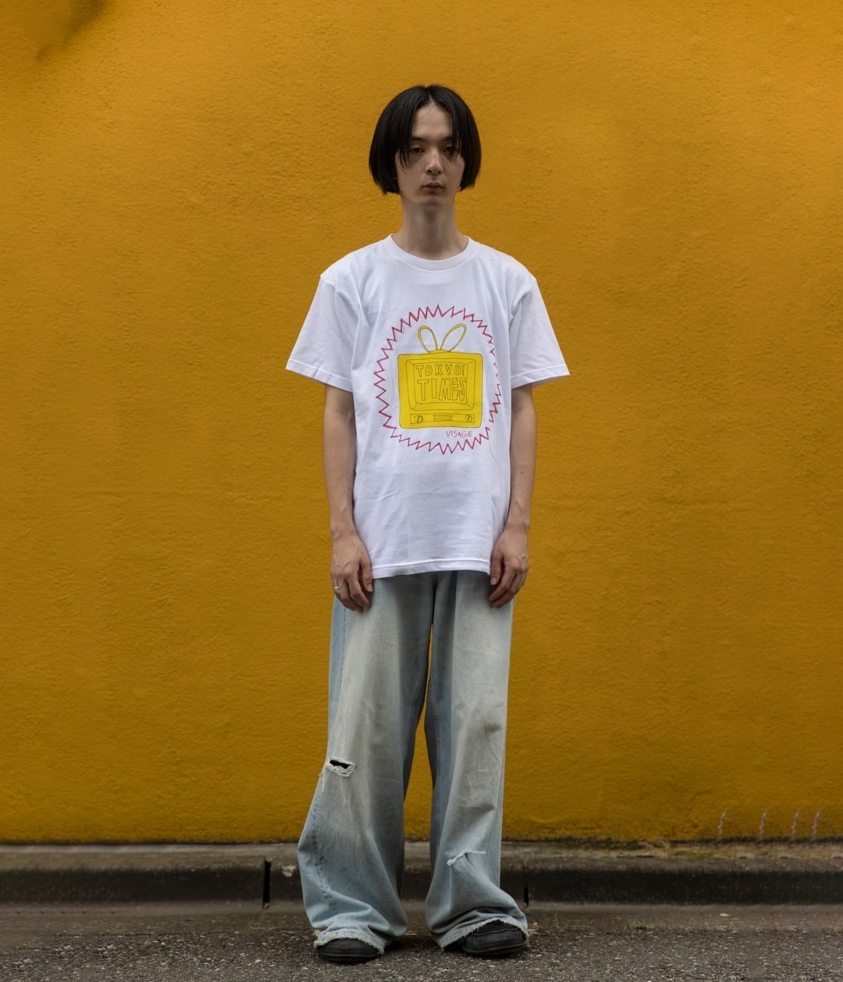 デザイナーDAITOのホワイトカラープリントTシャツ。